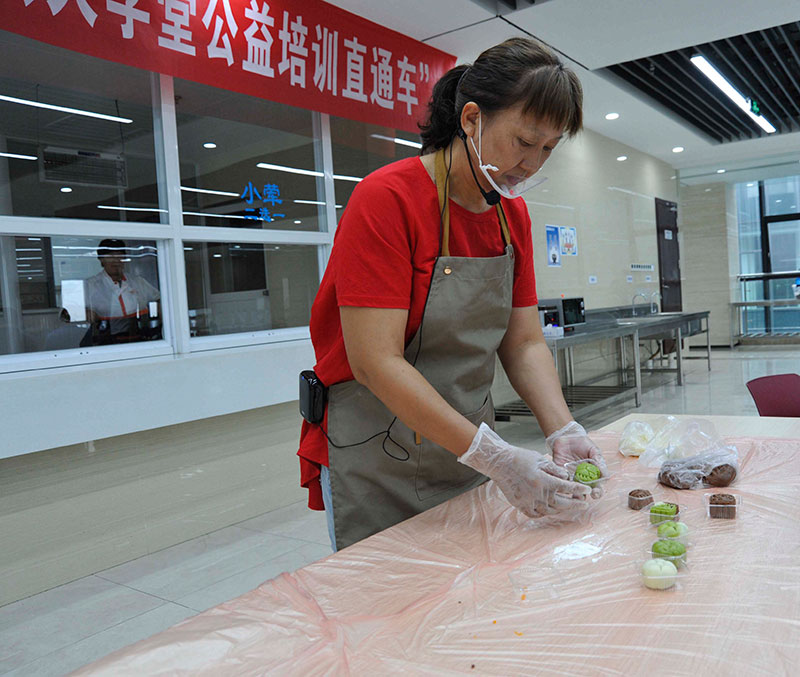 期間,總工會(huì)將“工會(huì)大學(xué)堂公益培訓(xùn)直通車”活動(dòng)帶到公司,選派專業(yè)老師進(jìn)行授課,教授員工月餅制作技能。