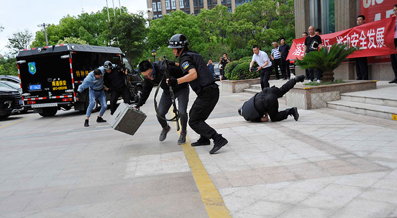 保安公司聯合江蘇銀行南通分行開展防搶聯合演習活動
