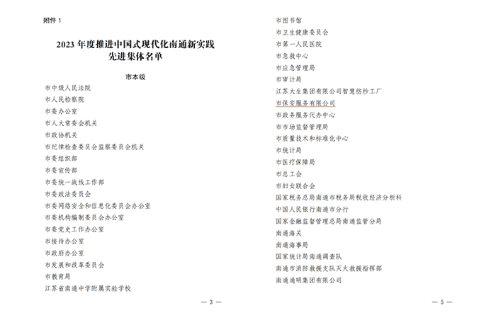 喜報——南通保安公司榮獲“2023年度推進(jìn)中國式現(xiàn)代化南通新實踐先進(jìn)集體”稱號