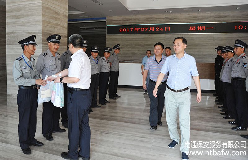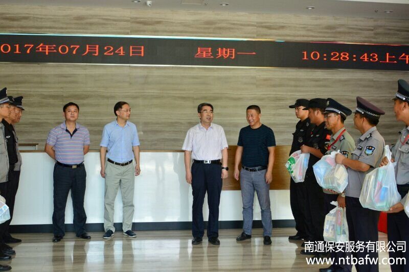 7月24日上午,城建集團(tuán)董事長(zhǎng)李維賢、副總經(jīng)理施焱、朱峭嶸在公司董事長(zhǎng)沈鑫華等陪同下,慰問(wèn)了冒高溫堅(jiān)守一線崗位的保安隊(duì)員,送上了防暑降溫用品。